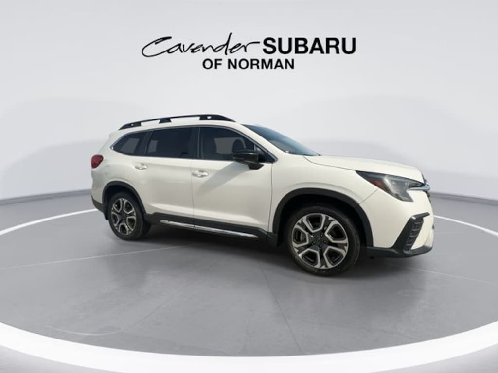 Features: Standard Model, Subaru Certified Pre-Owned Certified, Power Liftgate, 3rd row seats: bench, 4-Wheel Disc Brakes, 6 Speakers, ABS brakes, Air Conditioning, Alloy wheels, AM/FM radio: SiriusXM, Auto High-beam Headlights, Auto-dimming Rear-View mirror, Automatic temperature control, Axle Ratio: 4.44, Brake assist, Bumpers: body-color, Compass, Delay-off headlights, Driver door bin, Driver vanity mirror, Dual front impact airbags, Dual front side impact airbags, Electronic Stability Control, Emergency communication system: STARLINK Safety and Security (Subscription Required), Exterior Parking Camera Rear, Four wheel independent suspension, Front anti-roll bar, Front Bucket Seats, Front Center Armrest, Front dual zone A/C, Front fog lights, Front reading lights, Fully automatic headlights, Garage door transmitter: HomeLink, Heated door mirrors, Heated Front Bucket Seats, Heated front seats, Heated rear seats, Heated steering wheel, HVAC memory, Illuminated entry, Knee airbag, Leather Shift Knob, Leather steering wheel, Low tire pressure warning, Memory seat, Occupant sensing airbag, Outside temperature display, Overhead airbag, Overhead console, Panic alarm, Passenger door bin, Passenger vanity mirror, Perforated Leather-Trimmed Upholstery, Power door mirrors, Power driver seat, Power passenger seat, Power steering, Power windows, Radio data system, Radio: Subaru STARLINK 11.6" Multimedia Plus System, Rear air conditioning, Rear anti-roll bar, Rear Bumper Cover, Rear reading lights, Rear window defroster, Rear window wiper, Reclining 3rd row seat, Remote keyless entry, Security system, Speed control, Speed-sensing steering, Splash Guards, Split folding rear seat, Spoiler, STARLINK/Apple CarPlay/Android Auto, Steering wheel mounted audio controls, Tachometer, Telescoping steering wheel, Tilt steering wheel, Traction control, Trip computer, Turn signal indicator mirrors, Variably intermittent wipers, and Wheels: 20" x 7.5 J Dk Gray Alloy w/Machine Finish.